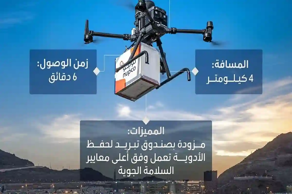في 6 دقائق فقط: "الصحة" تطلق أول رحلة طائرة درون لخدمة الحجاج شرق عرفات