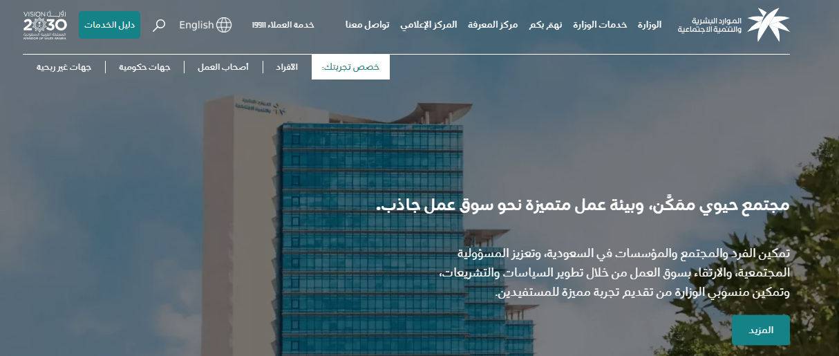 الانتقال إلى موقع وزارة الموارد البشرية والتنمية الاجتماعية من هنا.