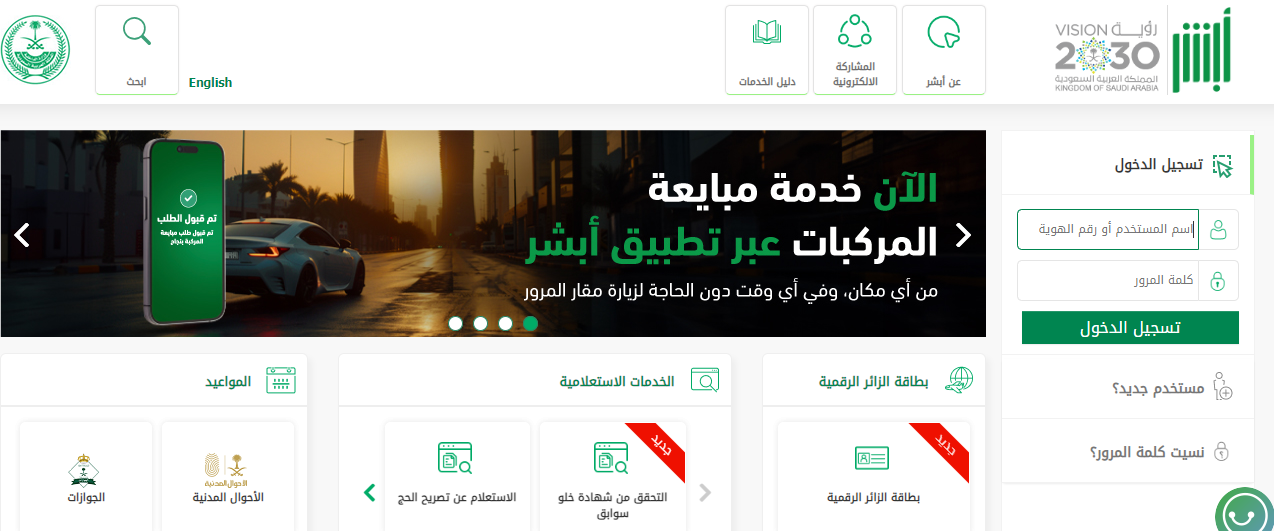 - الانتقال إلى منصة أبشر من هنا.
