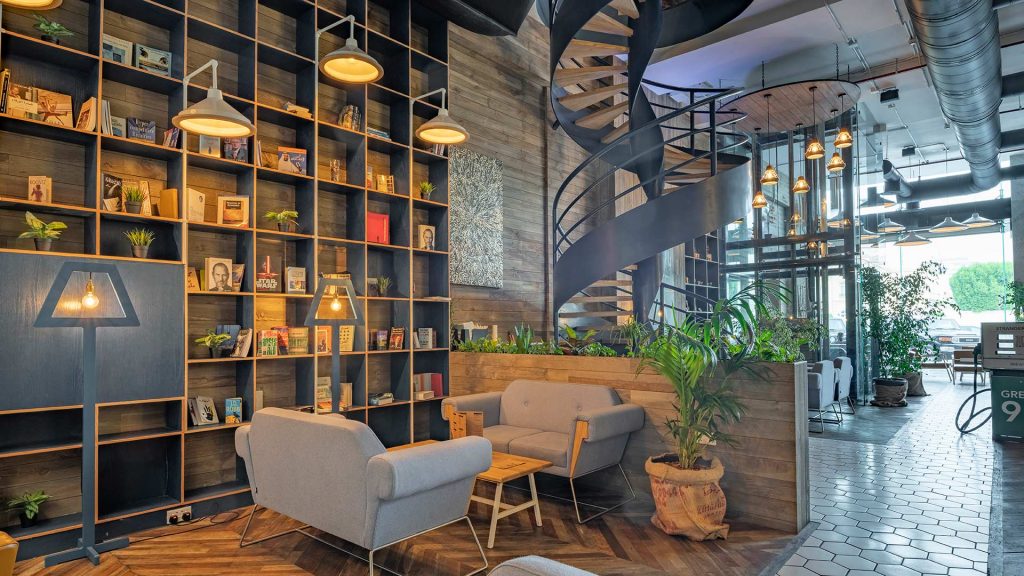 يتمتع المقهى بأجواء هادئة، مما يجعله مثاليًا للعمل أو الاسترخاء.